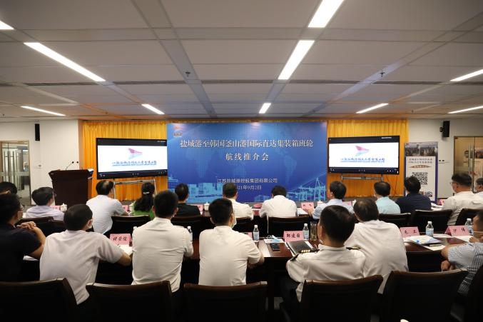 9月2日,盐城港至韩国釜山集装箱班轮航线推介会成功举行。集团党委书记、董事长、总经理周正雄出席活动并致辞。盐城海关副关长李健、市交通运输局副局长赵飞,东风悦达起亚汽车公司、太仓港集装箱海运公司及40多家货主、物流企业代表参加活动。