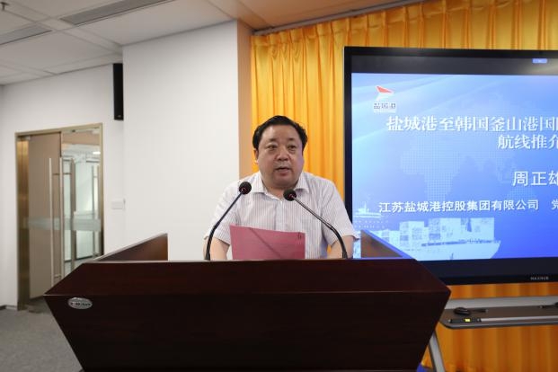 周正雄在致辞中表示,盐城港至韩国釜山集装箱班轮航线的开通,将充分激活盐城港大丰港区作为中韩(盐城)产业园唯一临港配套区的政策和区位优势,开辟出一条绿色、集约、便捷、高效的对韩物流新通道。同时,也将进一步提升盐城港的服务能力和水平,显著降低腹地企业的物流成本和时间成本,实现经济效益和社会效益的双丰收。希望能以此条航线为纽带,与各位企业家和衷共济、密切协作,携手并进、互利共赢。