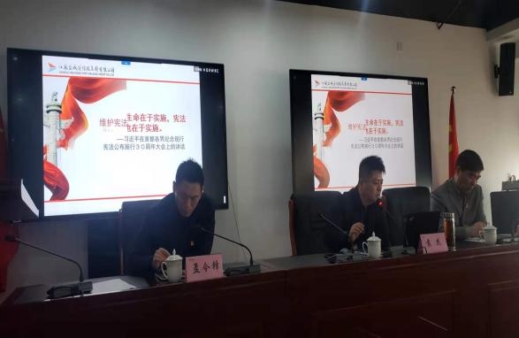 “宪法宣传周”活动开展以来,各级公司纷纷在醒目位置张贴宪法宣传海报,营造了浓厚的宣传氛围。12月4日,集团本部及各子(控)公司全员开展宪法学习教育活动。集团法务部推出《法治护航》(12·4国家宪法日专刊),本期专刊读本汇编了宪法原文、宪法沿革、习近平总书记关于宪法的重要论述、宪法学习自测题;大丰港区发布了宪法知识公示栏,组织员工参观学习;响水港区发放了宪法小册子,组织“宪法学习进工地”活动;集团官网“法治护航”版块专题发布《宪法一直在我身边》《宪法让生活更美》《我与宪法》视频,通过一系列生动图片、视频,形象生动普及宪法知识。
