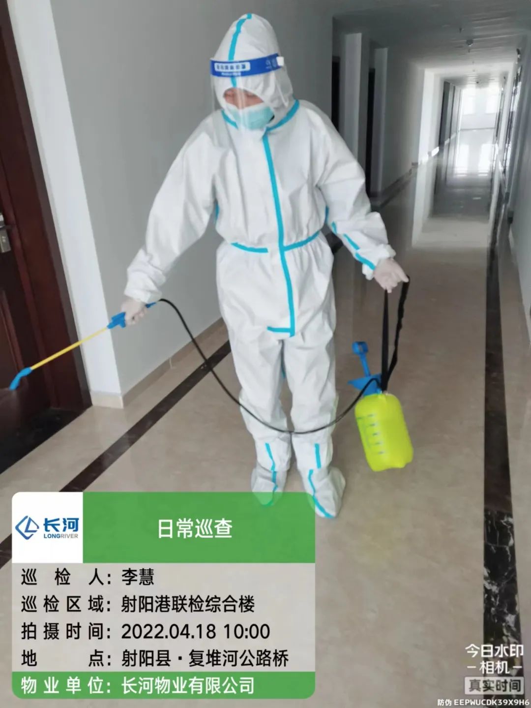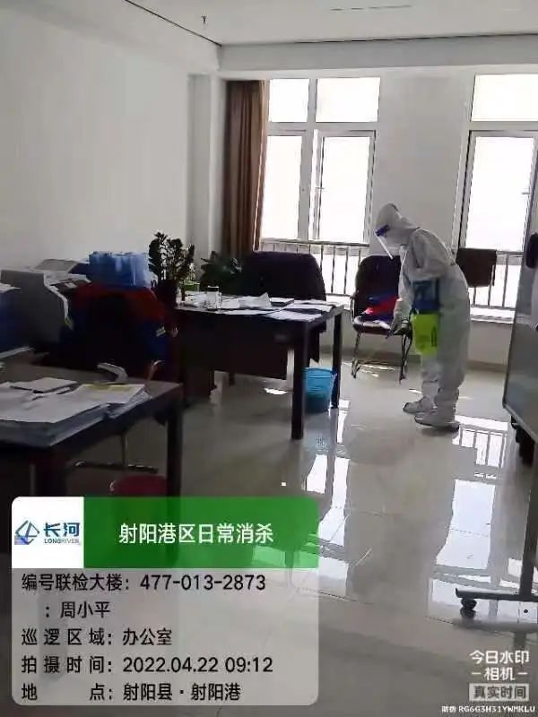 每日对港区重点区域进行消杀,办公生活楼内每2小时消杀一次,港区门岗、码头、各项目工地定时消杀,确保环境安全。