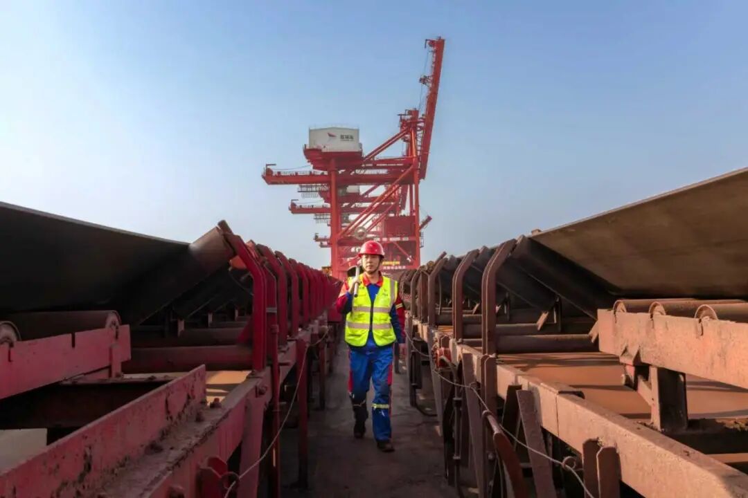 在盐城港一线职工的“穿搭”看似简单,却暗藏专业玄机。一身基础工装、一顶安全帽、一副手套——这些标准配置背后,是职工们用技术、专注和效率诠释的“显贵”内涵:不是衣服昂贵,而是技能精湛;不是配饰浮夸,而是操作精准。