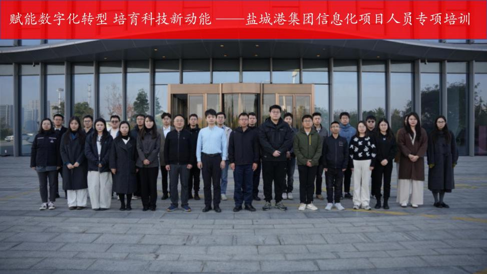 盐城港集团信息化项目人员专项培训班已顺利开班。在集团科技信息与机电设备部、组织人事部的牵头引领与港航人才培训中心的细致保障下,这支“数字先锋”队伍将以饱满的热情投入学习,在知识与实践的碰撞中积蓄力量,未来必将成为集团数字化转型的“生力军”,为打造智慧港口、推动集团高质量发展注入更强劲的动能。