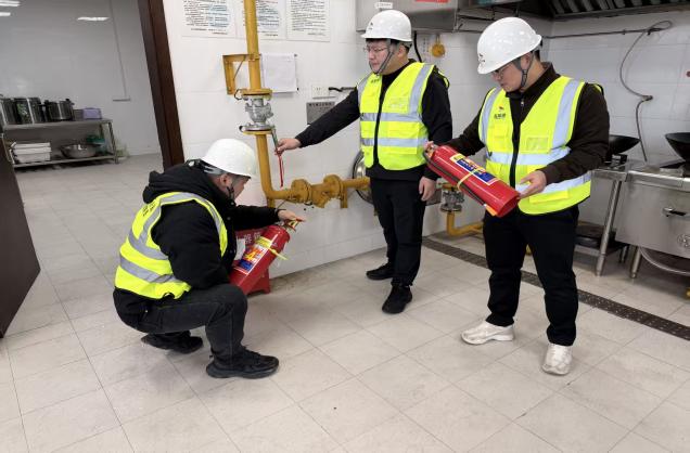 紧扣冬季气候干燥、用火用电负荷骤增的火灾易发特征,结合香港火灾中暴露的逃生避险短板,集团打造“理论+实操”双轮赋能体系。特邀消防救援支队专家开展专题培训,通过事故案例复盘、法规解读、器材实操三大模块,重点讲解易燃材料管控规范、初期火灾扑救技巧及“湿毛巾捂鼻低姿逃生”等实用方法;组织实战演练,强化报警联动、人员引导等关键环节协同能力,演练后即时复盘优化流程。同时建立常态化教育机制,利用班前会推送消防微视频、安全例会剖析典型案例,将消防安全知识融入日常管理,筑牢全员“人人讲安全、事事防火灾”的思想防线。