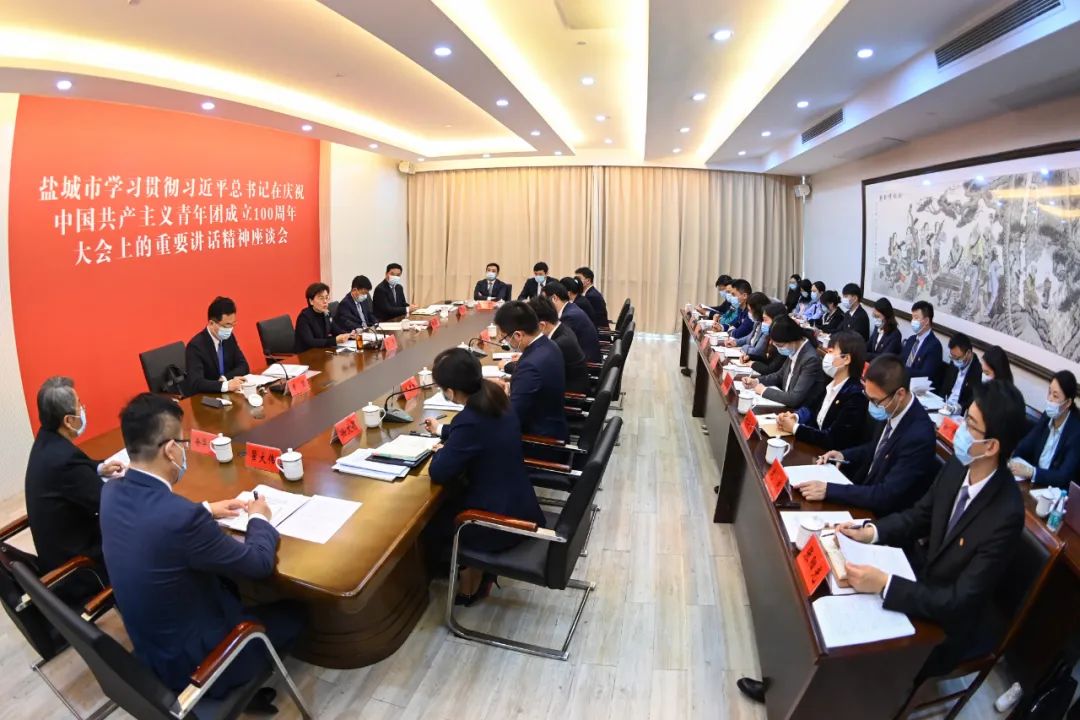5月12日,盐城市举行学习贯彻习近平总书记在庆祝中国共产主义青年团成立100周年大会上的重要讲话精神座谈会。市委书记徐缨出席会议并讲话。她强调,全市各级团组织和广大青年要深入学习贯彻习近平总书记重要讲话精神,坚持以习近平新时代中国特色社会主义思想为指导,按照省委书记吴政隆在座谈会上的讲话要求,牢记初心使命,坚定信仰信念,勇担时代重任,积极践行“请党放心、强国有我”的青春誓言,坚定不移听党话、跟党走,奋力奏响“强富美高”新盐城现代化建设青春最强音,以实际行动迎接党的二十大胜利召开。