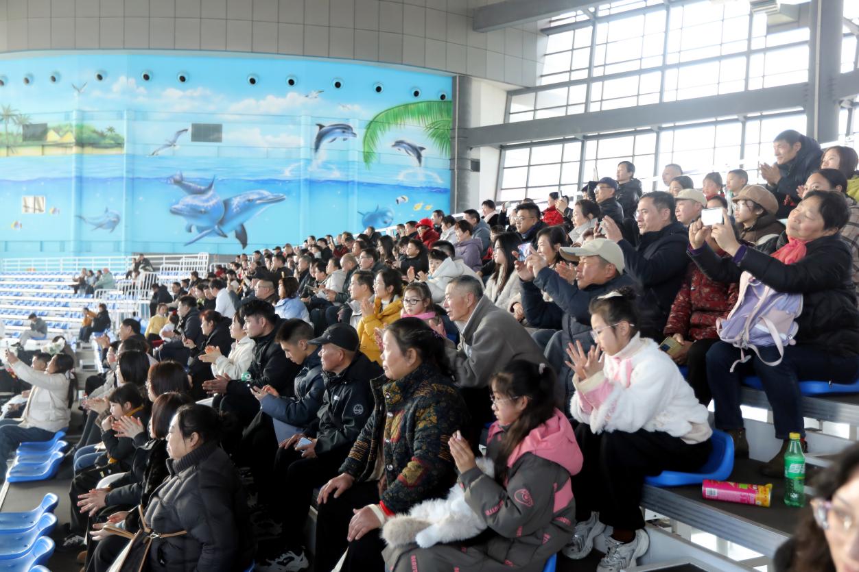 特色打卡场景前,游客们纷纷驻足,用镜头记录下这份独特的年味记忆。海豚表演区更是人气爆棚,聪明可爱的海豚在驯兽师的指挥下,完成了一系列高难度动作,引得观众阵阵掌声与欢呼。