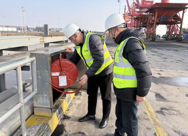 策马扬鞭守底线,安全卫士筑牢港航防护墙。“节后复工,安全意识不能‘复工’,隐患排查必须更细致!”安全环保部牵头的安全小组迅速开展“拉网式”巡查。针对堆场安全检查、散货作业扬尘、仓储场地使用等风险点,他们秉承“一点一策”的监管理念,穿梭在港区各个角落,及时发现并消除安全隐患,耐心开展安全交底和警示教育,将安全责任落实到每一个岗位、每一个环节。安全团队像警惕的哨兵,以快马加鞭的实干实效,筑牢新春生产的安全防护墙。