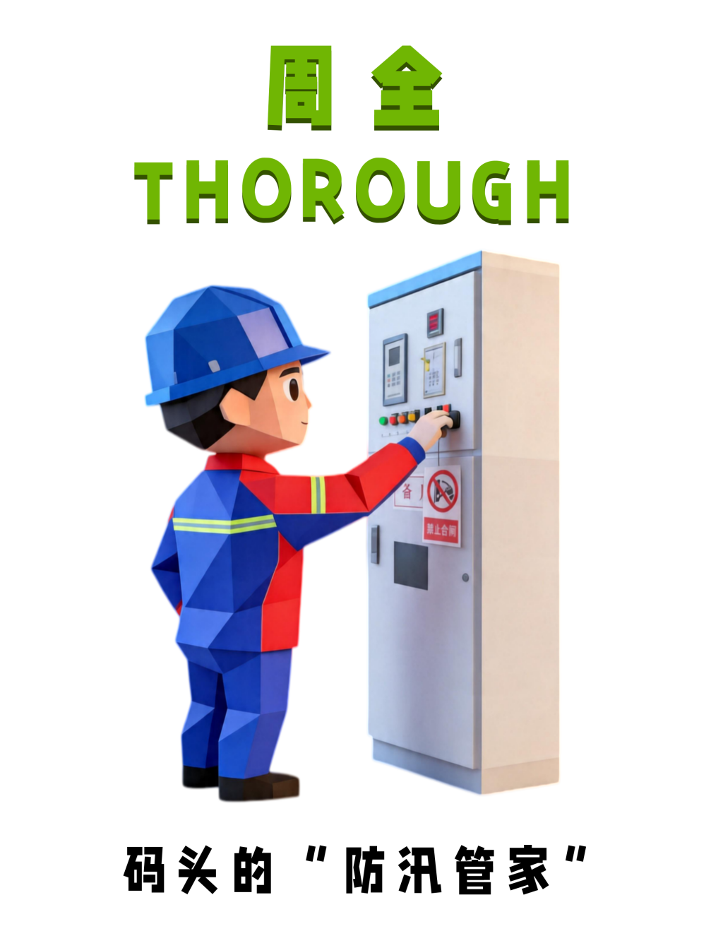 作业环境与应急保障,是设备安全运行的“最后一道防线”。检修员担任起“防汛管家”的角色,系统清理码头排水沟和集水井,疏通排水管网,确保雨水快速排净,避免积水浸泡设备基础。他们定期检查调试应急排水泵、防雷装置,配备防滑垫、防水警示标识等应急物资。更建立起“每日巡检、每周复盘”机制,细化维护台账,责任到人。这种周全的保障体系,确保设备隐患早发现、早处置,让整个作业现场在恶劣天气下依然安全有序。
